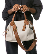 Sandália Comfort em Couro Tri Alice Caramelo Off White e Preto - Caramelo