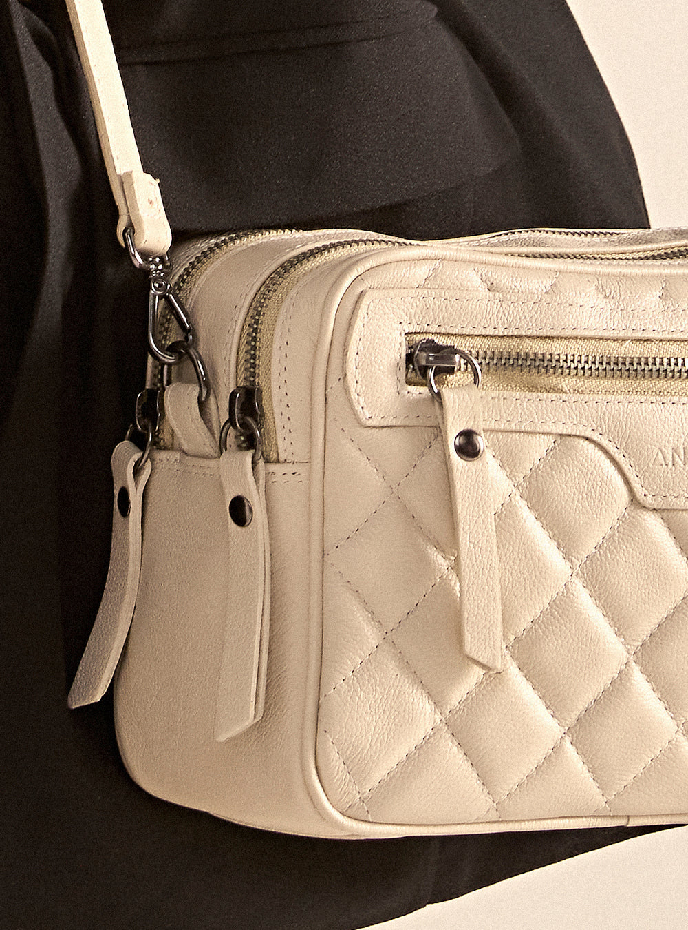 A tonalidade off white adiciona um toque de leveza e elegância discreta a qualquer conjunto de roupas, complementando desde visuais mais simples até os mais elaborados. As alças ajustáveis garantem conforto durante o uso, enquanto o fechamento seguro proporciona tranquilidade em movimento.