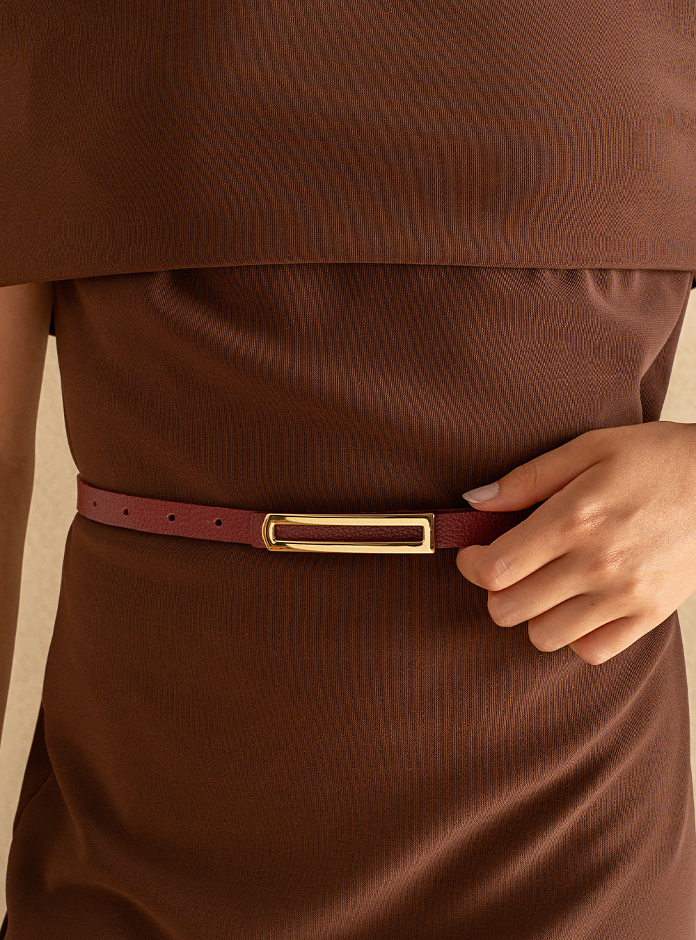 Discreto, mas cheio de personalidade, o Cinto Fino Bordô é o detalhe que faz a diferença em qualquer look. A tonalidade bordô se destaca com charme, adicionando profundidade às produções e combinando com diferentes estilos.
