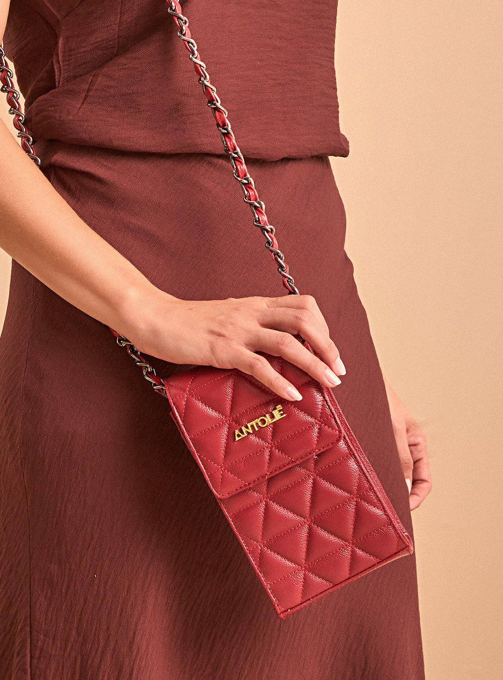 O couro matelassê em tom vermelho intenso confere à bolsa uma textura luxuosa e um visual marcante. Cada detalhe do matelassê revela um cuidado artesanal que ressalta a beleza e a durabilidade da peça, proporcionando uma experiência tátil excepcional a cada toque.