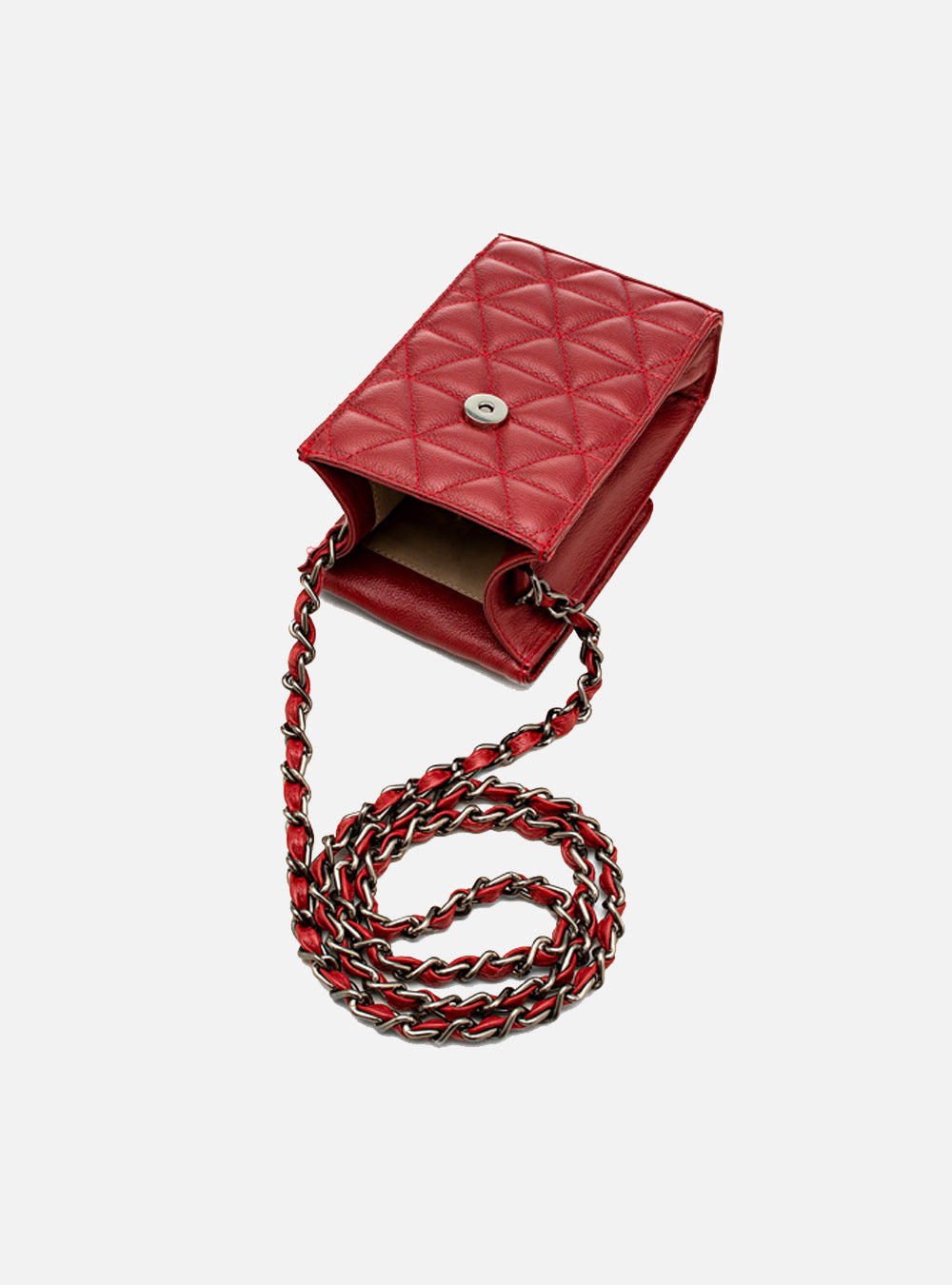 Com a Mini Bolsa em Couro Matelassê Vermelho, você não apenas transporta seus pertences com estilo vibrante, mas também faz uma declaração de moda audaciosa e sofisticada. Esta bolsa é um acessório indispensável para mulheres que valorizam o estilo e a praticidade em cada detalhe.