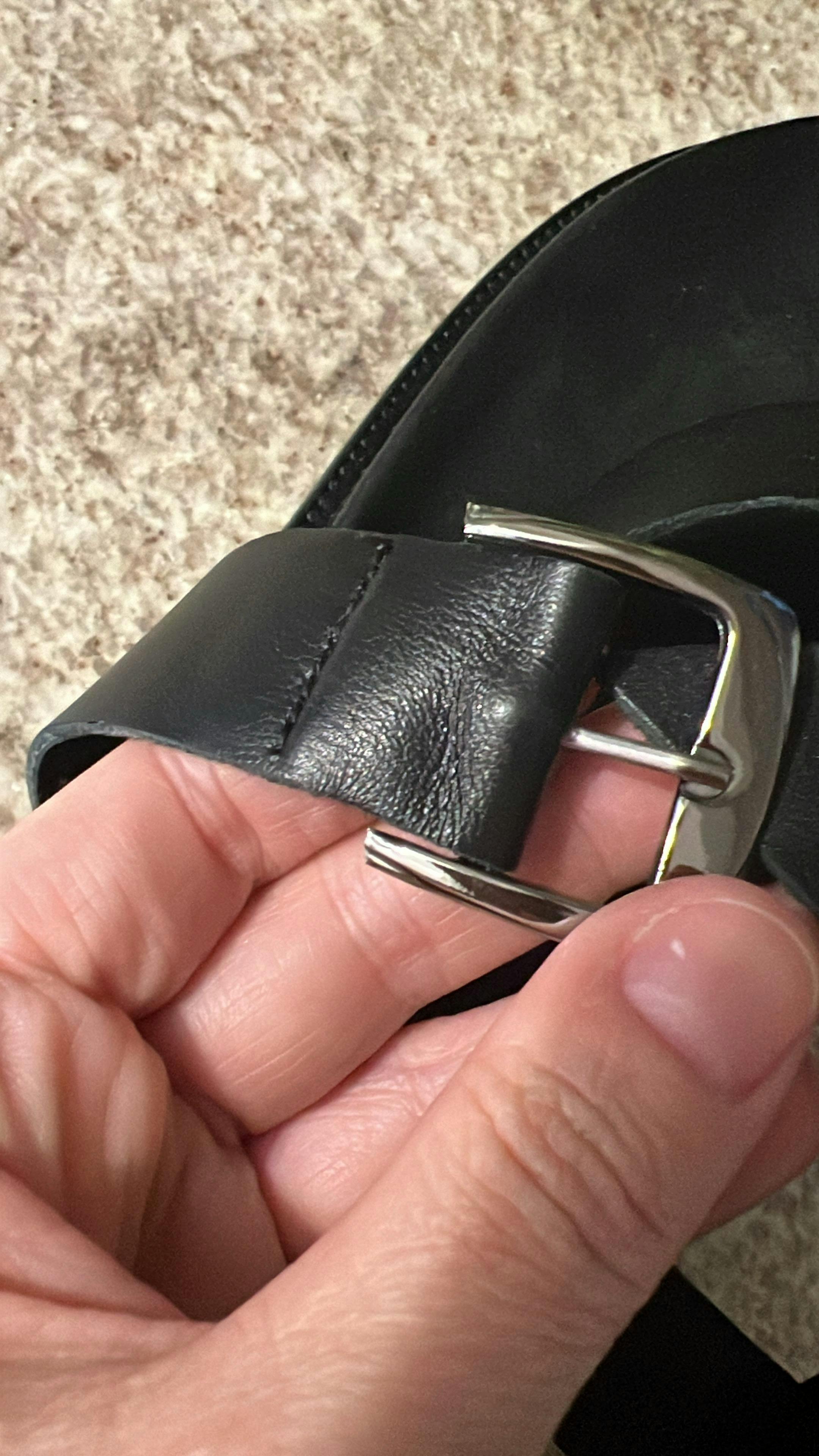 A papete em couro preto combina design clean com a modernidade da dedeira e a fivela lateral, funcionando bem em diferentes ocasiões.