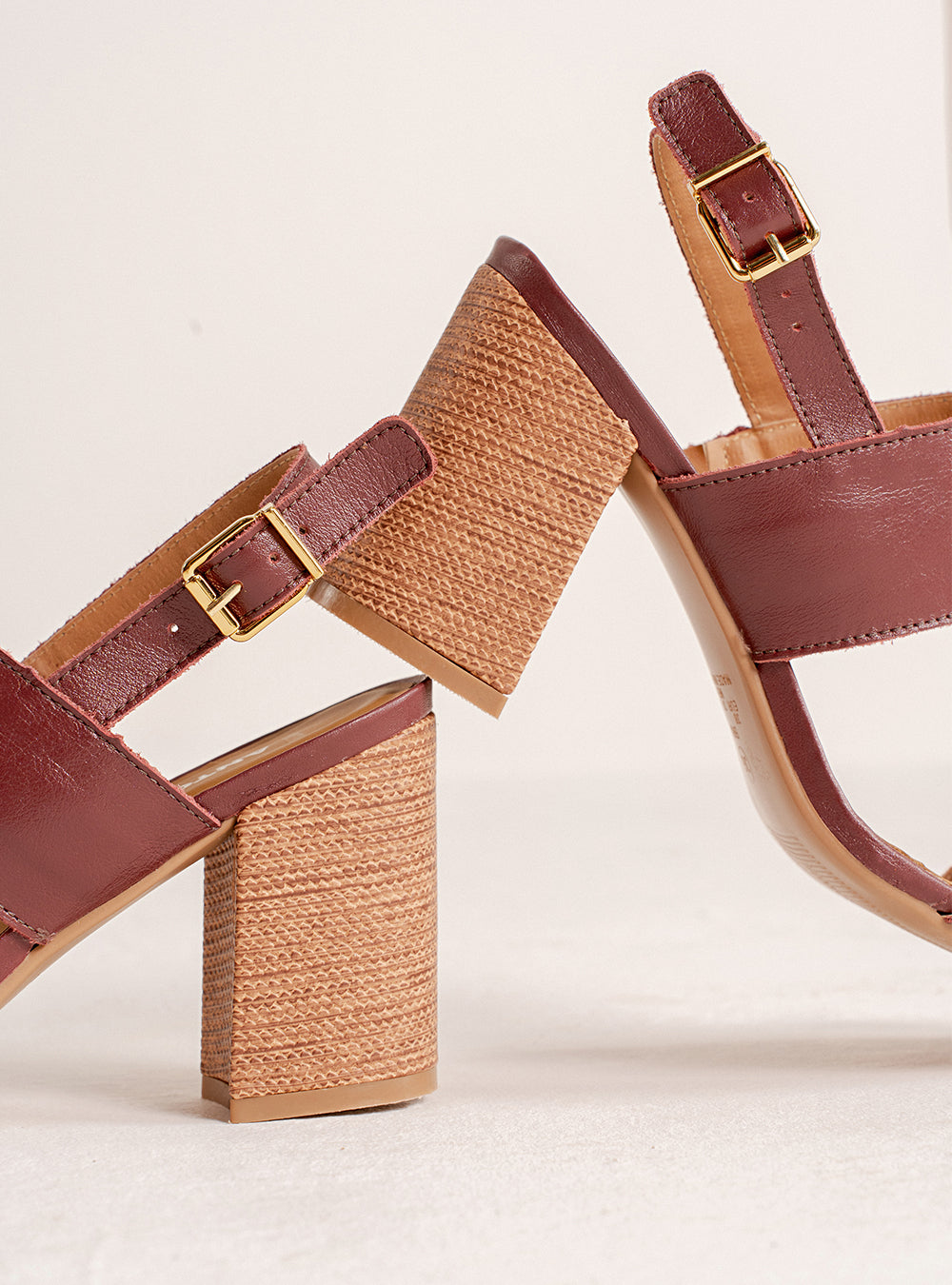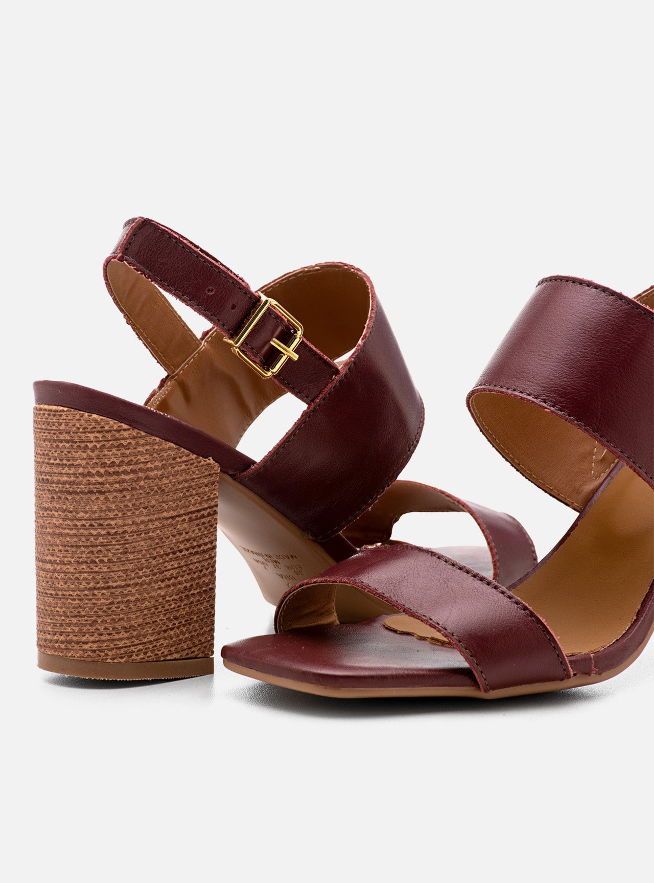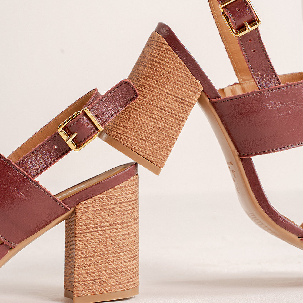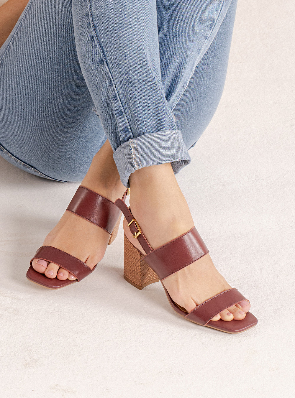 Tira larga em couro bordô envolve o pé com firmeza, enquanto o salto bloco equilibra presença e estabilidade. Um clássico contemporâneo que transforma qualquer look.