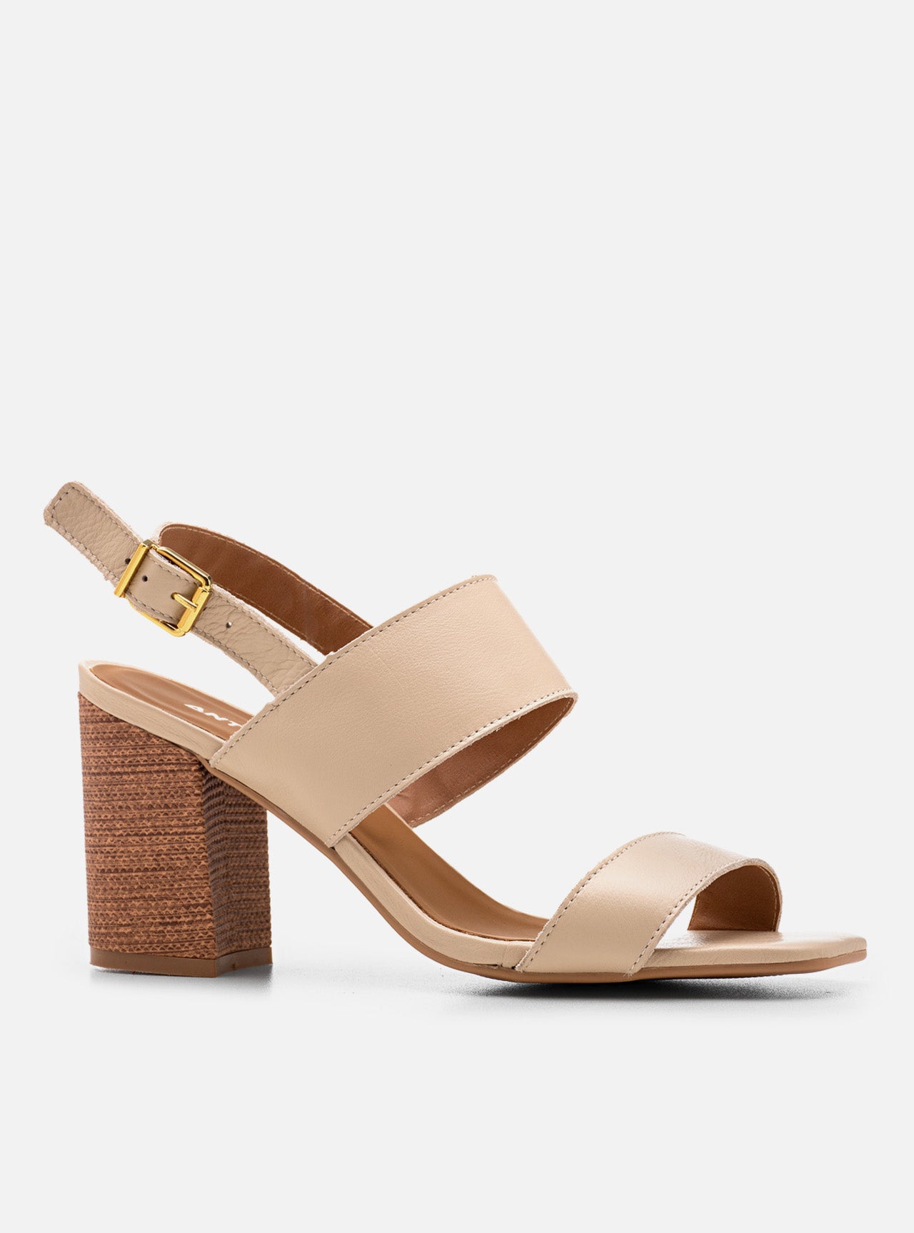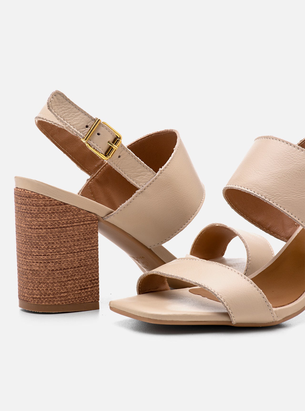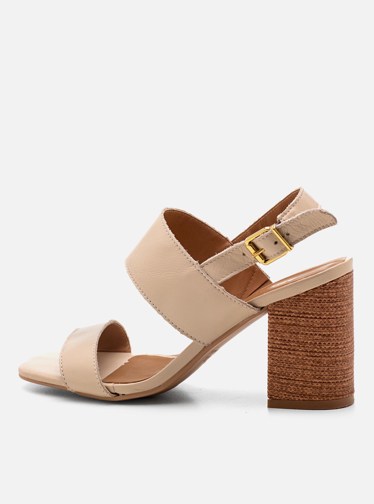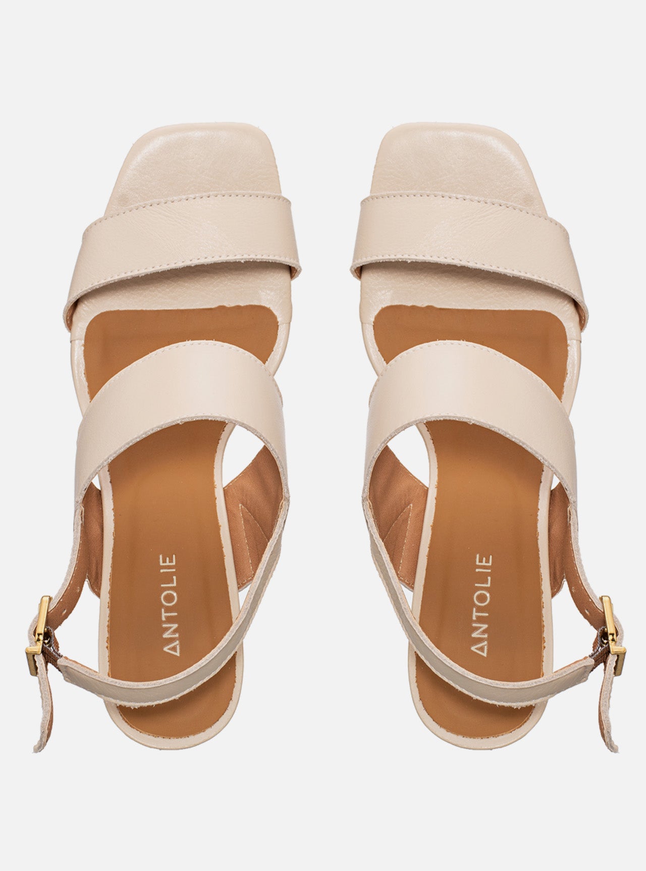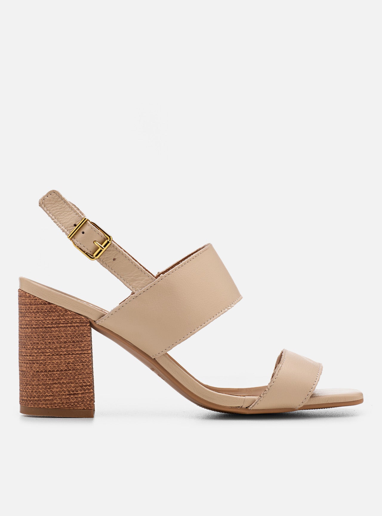 A tira larga desenha a intenção do look antes mesmo do restante chegar. Couro off white e salto bloco como poesia funcional: simples, mas impossível de ignorar.