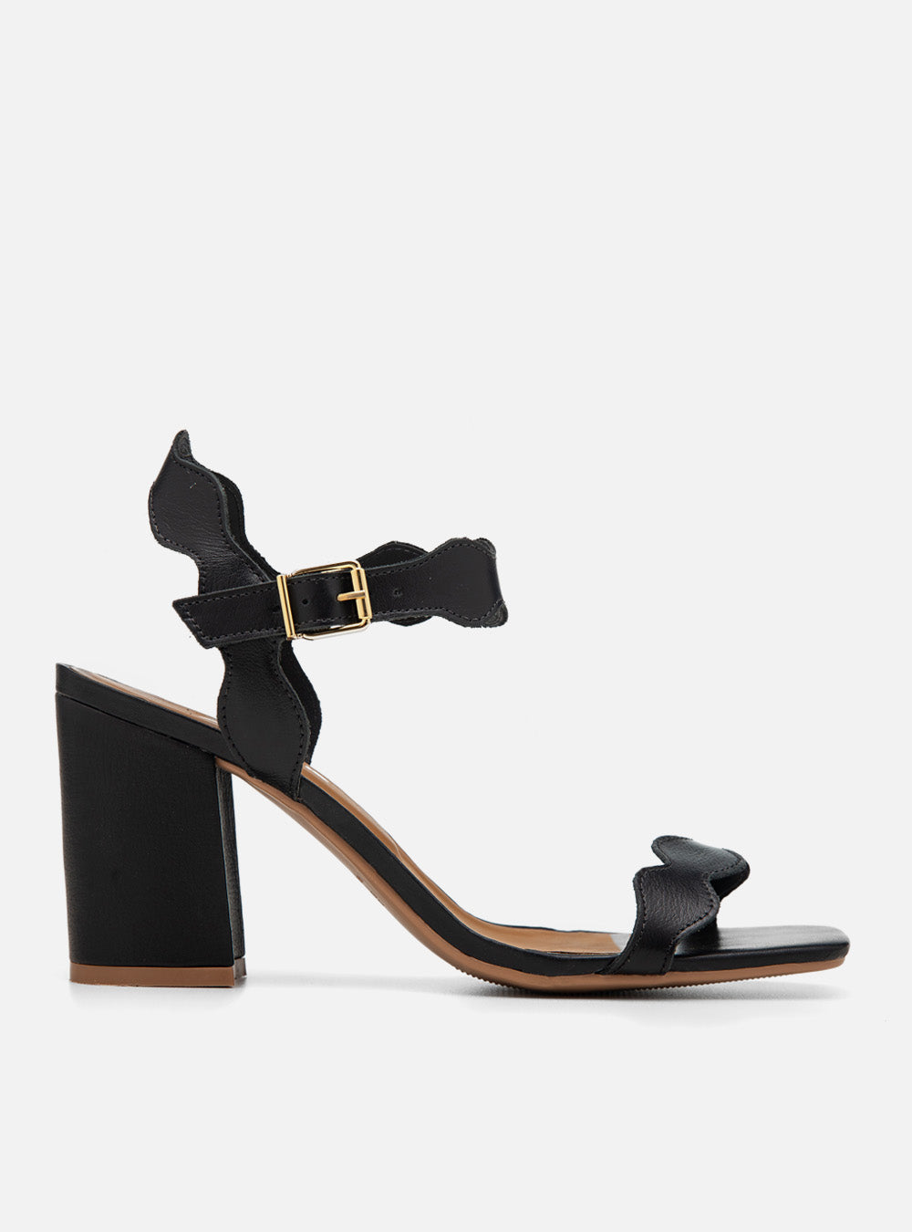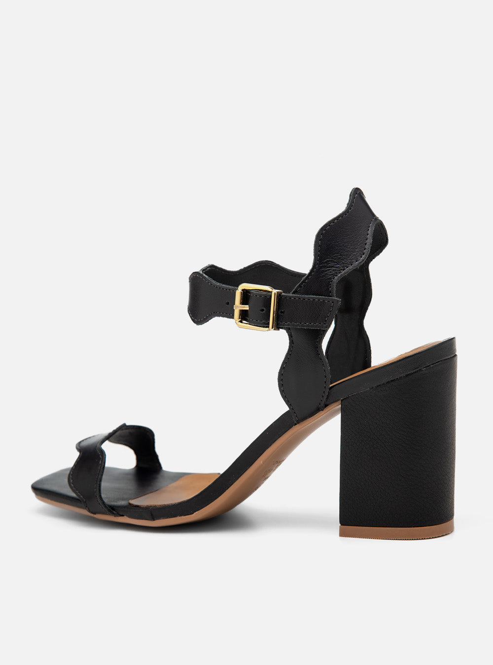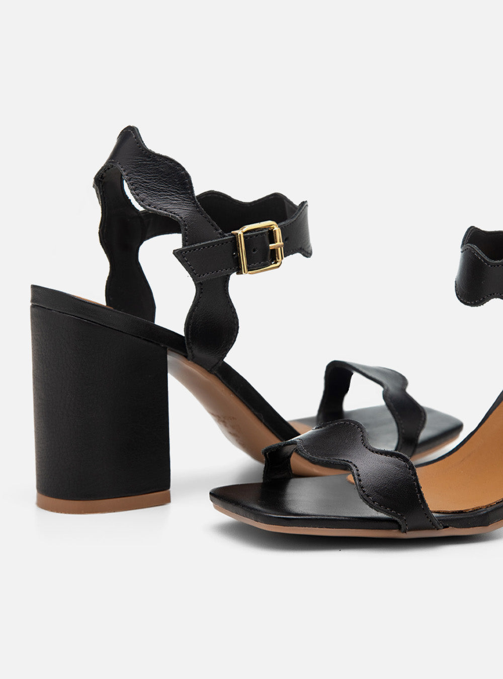 O recorte ondulado cria ritmo visual e leveza, enquanto o salto bloco traduz elegância com conforto. Uma sandália que transforma detalhes em presença, do dia à noite.