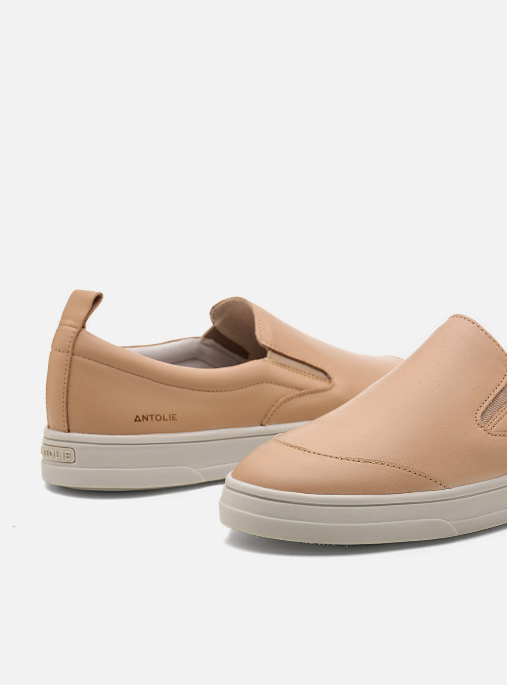 O slip on não tem cadarço, oferecendo um estilo minimalista e maior praticidade no uso.