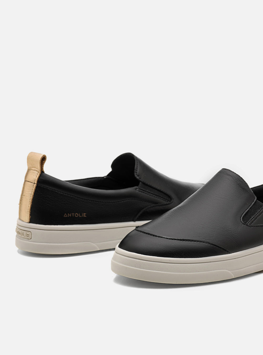 O slip on não tem cadarço, oferecendo um estilo minimalista e maior praticidade no uso.